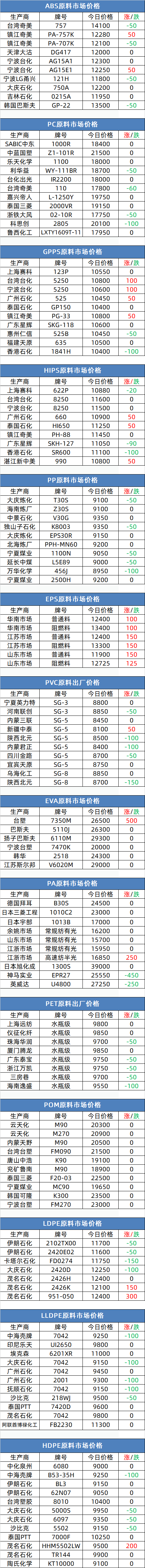 EVA:上游主要原料维稳整理,但成本影响因素始终弱化,下游光伏需求略有减弱,石化价格或保持支撑,其他下游高位抵触,市场多方消息博弈。预计短期内市场消化整理运行,今日华南市场7470M价格参考在29500元/吨(含税)左右。