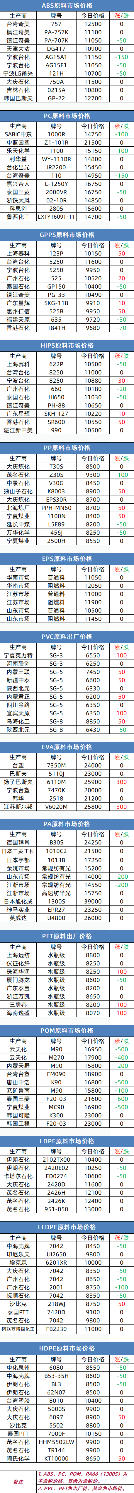 EPS:原油反弹,苯乙烯止跌上扬,EPS市场询盘气氛好转,终端商家适量补货,场内成交放量。预计短线EPS市场或窄盘整理,今日华南地区EPS普通料市场价格参考在11000-11100元/吨(含税)左右。